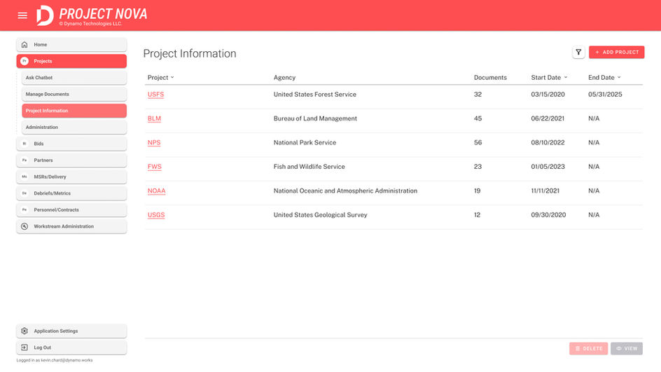 In April 2025, while my contract work with the USFS was being disrupted during the early stages of DOGE, I was approached by the CEO of Dynamo with an unexpected opportunity. He asked whether I had the bandwidth to help with a passion project he was exploring at the time, known internally as Project Nova. The idea was still in its infancy, but the vision was clear: to build an AI driven product that could accelerate the early stages of development when working on contracts.